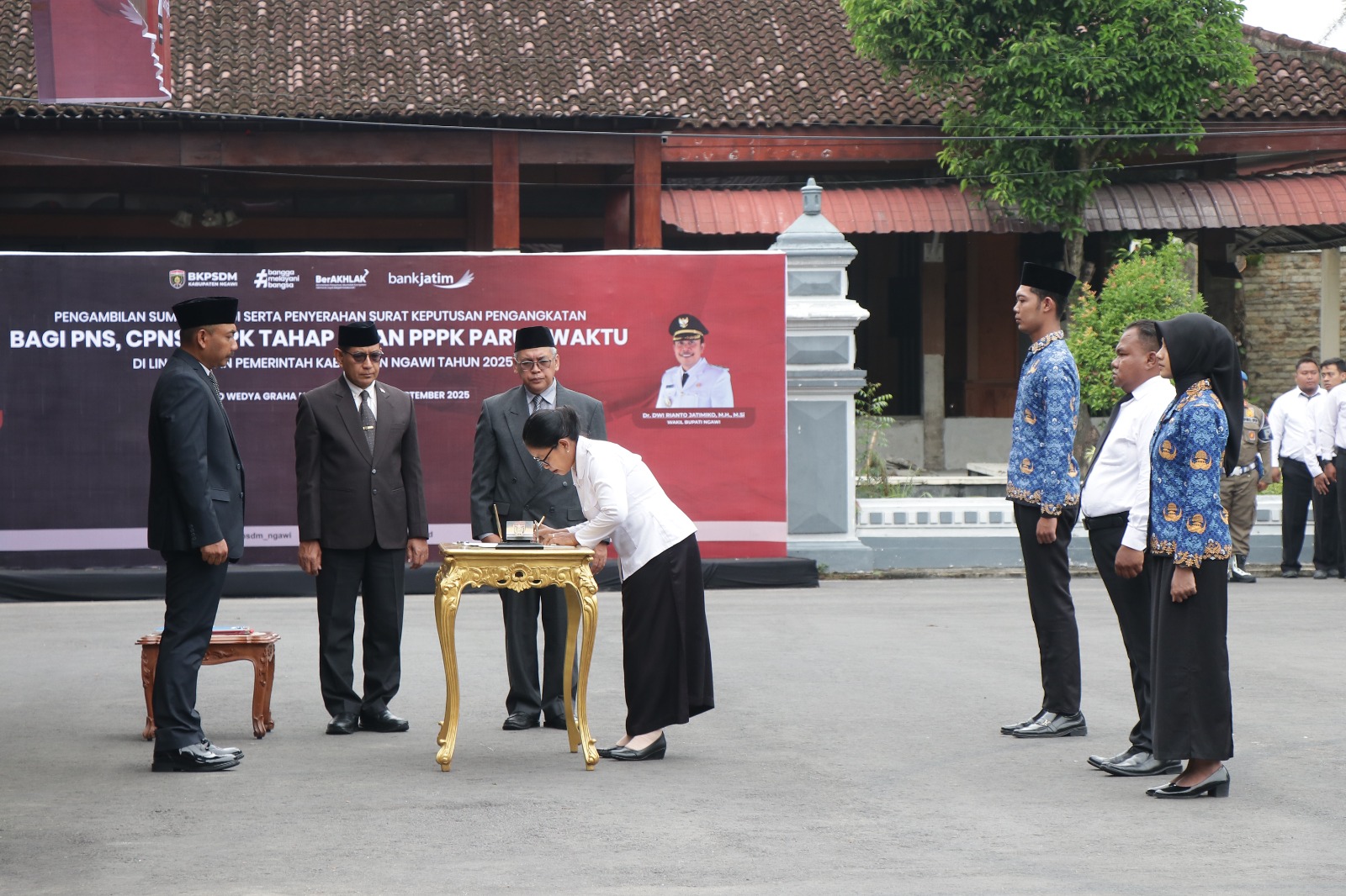 Prosesi pengangkatan dipimpin langsung oleh Bupati Ngawi Ony Anwar Harsono dan dihadiri Forkopimda Ngawi. Dalam sambutannya, Bupati menyampaikan bahwa hadirnya ASN PPPK baru ini menjadi tambahan energi penting bagi pemerintah daerah untuk memperkuat layanan publik.