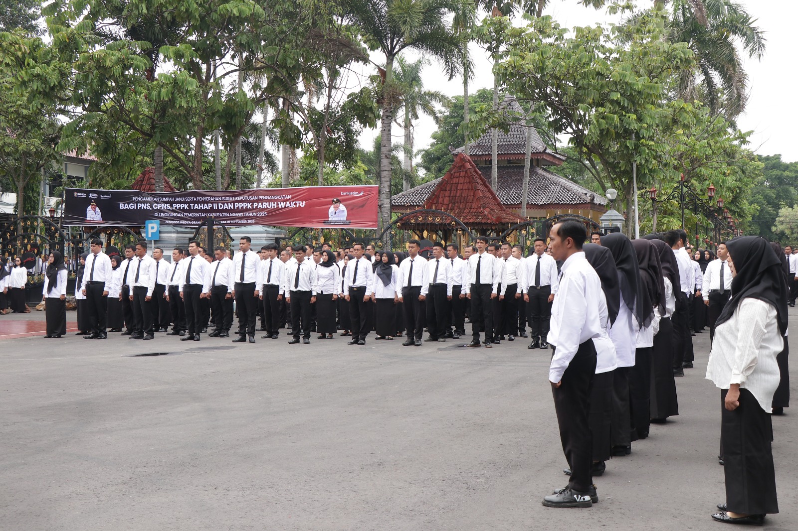 Sebanyak 1.107 Aparatur Sipil Negara Pegawai Pemerintah dengan Perjanjian Kerja (ASN PPPK) resmi dikukuhkan di Pendopo Wedya Graha, Selasa (30/9/2025). Jumlah tersebut terdiri dari 373 ASN PPPK Tahap 2 dan 734 ASN PPPK Paruh Waktu.