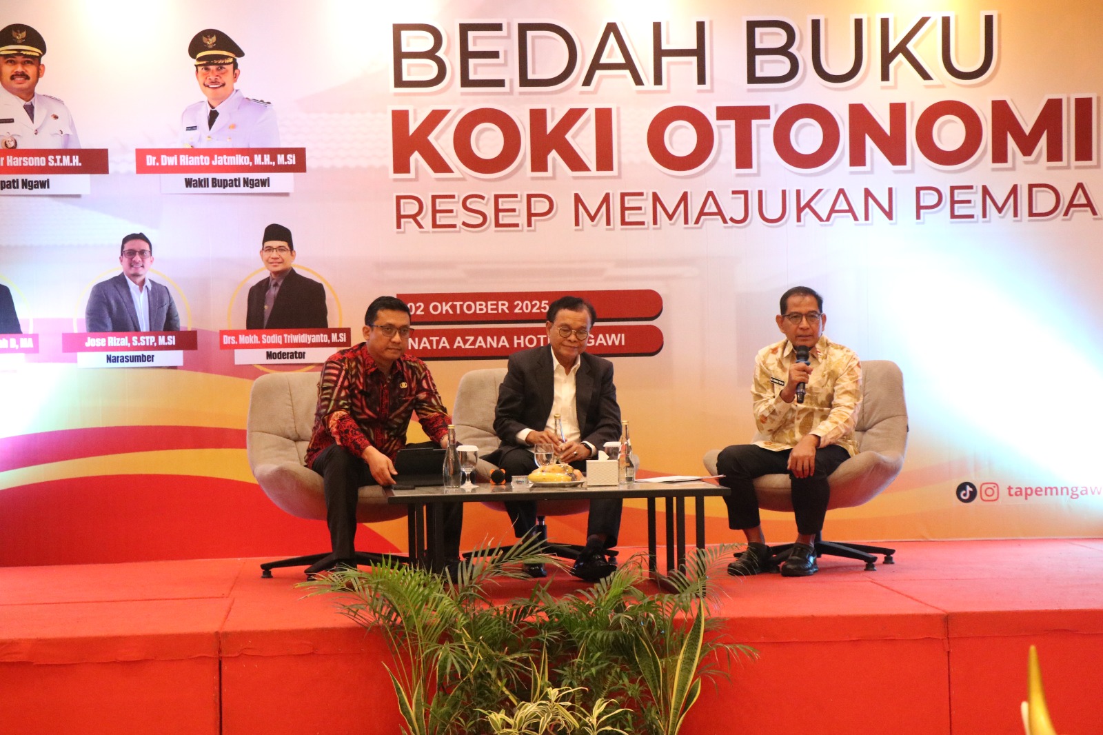 Pemerintah Kabupaten Ngawi menggelar bedah buku “Koki Otonomi: Resep Memajukan Pemda” di Nata Azana Hotel, Kamis (2/10/2025). Acara ini dibuka langsung oleh Wakil Bupati Ngawi Dwi Rianto Jatmiko.