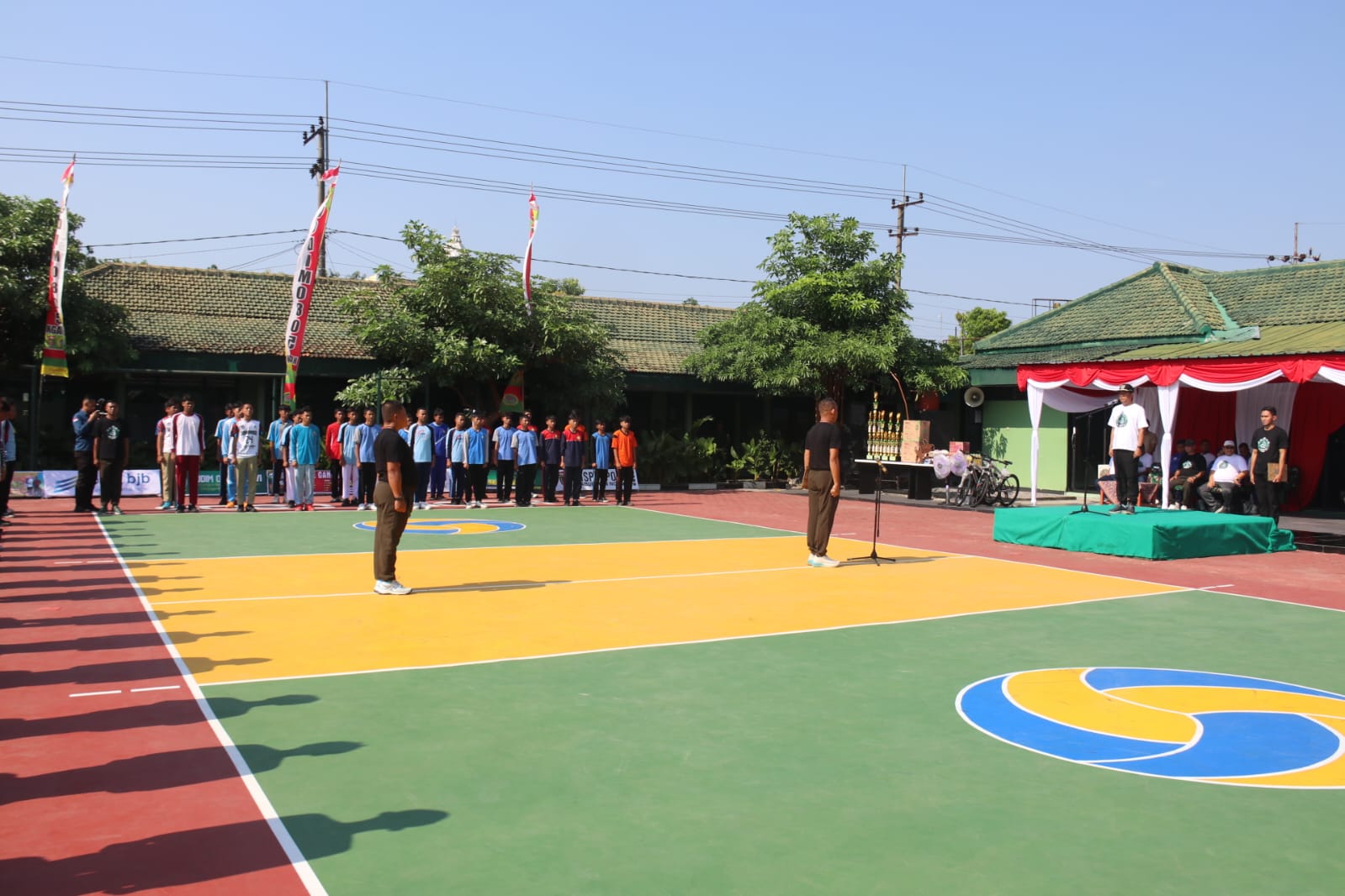 Suasana penuh semangat mewarnai pembukaan Turnamen Voli Bupati Ngawi Cup 2025 di Lapangan Voli Makodim 0805 Ngawi, Kamis (9/10/2025). Acara ini dibuka secara resmi oleh Wakil Bupati Ngawi Dwi Rianto Jatmiko dan menjadi bagian dari rangkaian peringatan HUT ke-80 TNI. Turnamen ini diikuti oleh atlet-atlet muda kategori pelajar yang menunjukkan antusiasme tinggi sejak hari pertama pertandingan.