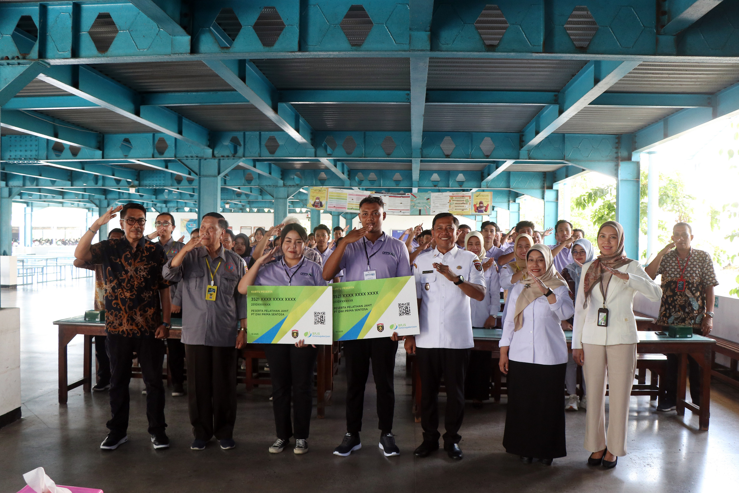 Turut hadir Kepala BPJS Ketenagakerjaan Ngawi Setyorini, serta perwakilan manajemen PT Dwi Prima Sentosa.