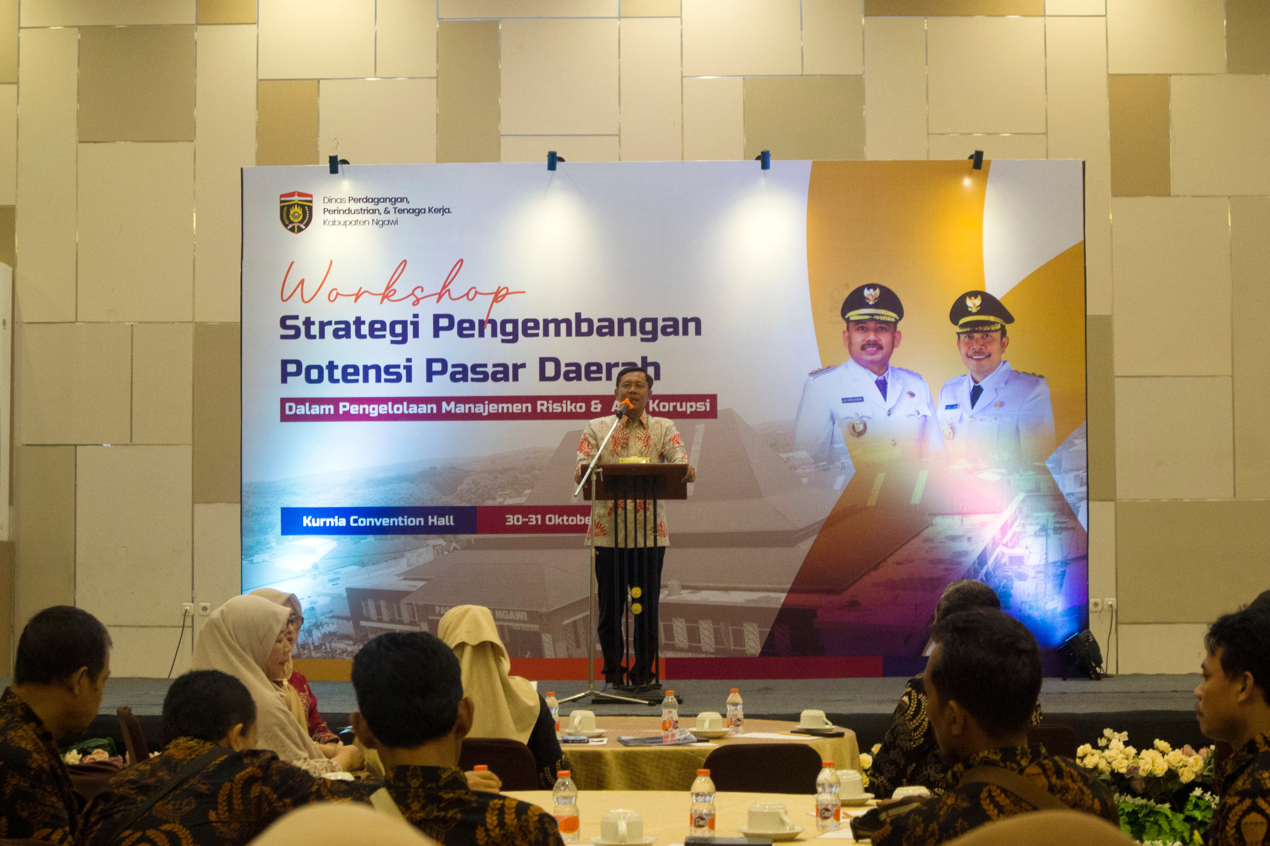 Dalam upaya mewujudkan pasar daerah yang bersih, berdaya saing, dan berintegritas, Pemerintah Kabupaten Ngawi melalui Dinas Perdagangan, Perindustrian, dan Tenaga Kerja (DPPTK) menyelenggarakan Workshop Strategi Pengembangan Potensi Pasar Daerah dan Penguatan Budaya Antikorupsi di Kurnia Convention Hall, Kamis (30/10/2025). Kegiatan yang berlangsung selama dua hari hingga Jumat (31/10) ini dibuka secara resmi oleh Wakil Bupati Ngawi Dwi Rianto Jatmiko (Antok).